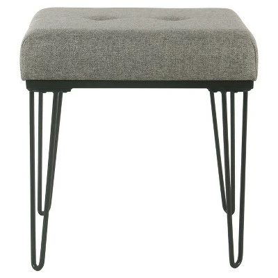 Modernize your space in any room with this mid-century style ottoman with metal hairpin legs and button tufting. Pair two at the end of a bed or around the living room for extra seating. This button tufted stool is perfect for placing next to the sofa and propping up your feet after a long day. The cushion features 4 inches of medium firm padding for extra comfort. Maximum weight capacity is 250 pounds. No assembly required. 19Wx18″Dx18.5″H.
