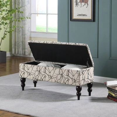 Insert this spacious floral upholstered storage bench in your room, and enjoy its versatile functionality. This piece serves as seating for your home when you’re not using it as a footrest or a serving platform, and it lets you tuck away blankets, magazines and whatever else you want to get up and off the floor to keep your room neat and tidy.