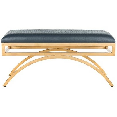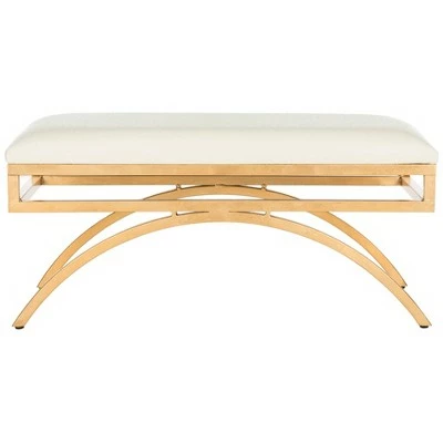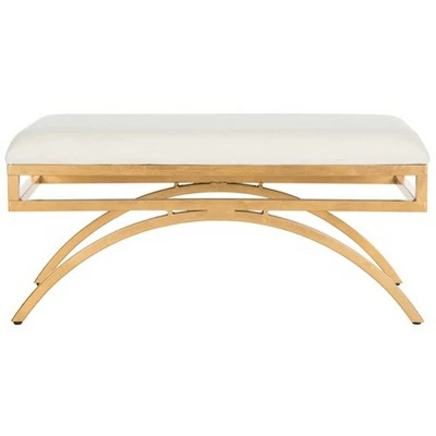 This radiant arc bench was inspired by the iconic modern pieces of Italian designer Gio Ponti. Sleek and sophisticated, its tailored upholstery complements its warm gold finish. Ideal for extra seating, a glass of wine, or even as a bench in the boudoir. Constructed from MDF wood and gold colored iron, this graceful bench is able to support up to five hundred and fifty pounds. The Moon Arc bench is the perfect choice for Contemporary, Glam, Mid-Century, Modern or Transitional style décor