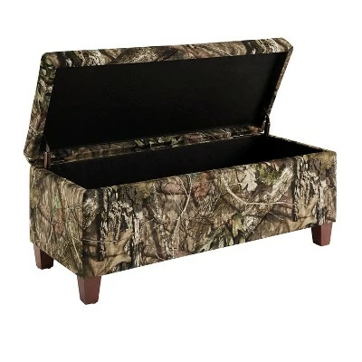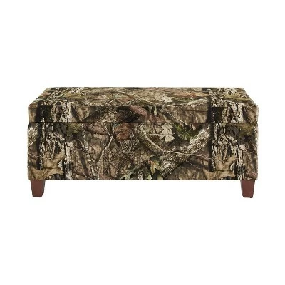The Mossy Oak Nativ Living Storage Ottoman is perfect for placing in a large closet, entry or at the foot of a bed. The Mossy Oak Break Up Country Patterned upholstery adds masculinity to the piece. Once opened, ample interior storage space is revealed. A plush cushioned top makes this piece perfect for sitting.