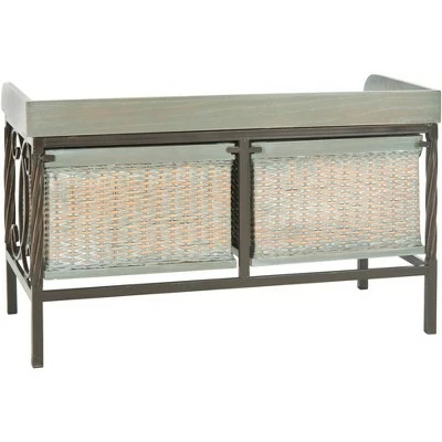 The Noah Storage Bench is a welcome addition to any entry hall, mud room, or family room. Noah’s French grey seat is perfect for removing rain boots or shoes after a long day, and two wicker style baskets tucked in an intricately detailed antique pewter frame offer discrete yet stylish storage. Care Instructions: Dust regularly with a soft, dry cloth. Never use oiled or treated cloths on lacquered finishes. Some finishes can be wiped with a damp (not wet) cloth, followed at once by rubbing with a dry cloth to remove fingerprints and smudges. For persistent spots, gently clean with a soft cloth and a solution of water and mild soap, make sure to wipe dry. Use adhesive felt pads, coasters and placemats to protect your furniture.