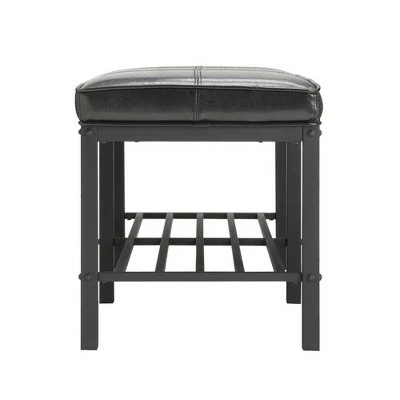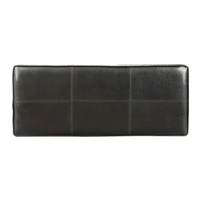Add clean and modern lines with the Norton Modern Faux Leather Upholstered Bench by Inspire Q to your entryway, bedroom, or living space! This bench adds convenient storage under the bench or extra space where you can slip your shoes. The faux leather padded seat cushion offers a comfortable spot to rest while taking your shoes off when entering the home.