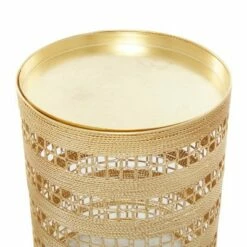 - Metallic gold finish over the contemporary-styled frame with a split quatrefoil pattern and long, white, faux fur hairs