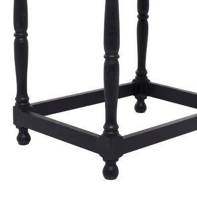- This delightful set of accent table and chair features a naturally textured wooden table top and black finished body, legs, and feet