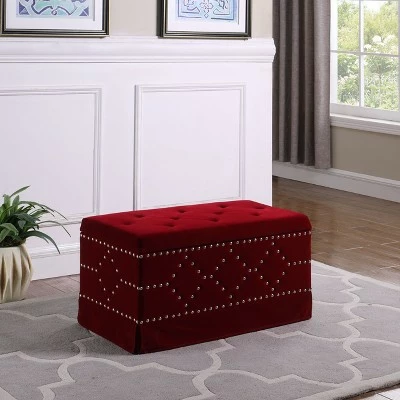This ottoman (set of 3) has a plush tufted top that is comfortable for sitting and opens to the storage compartment with 2 added extra seating. This ottoman is the perfect addition to your home to solve any kind of storage issues. It features wood composite construction and eye-catching nailhead detail. Available in gray, red and blue.