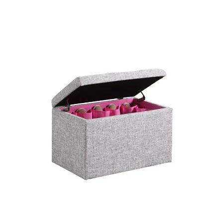 A shoe lover’s dream, this charming tufted shoe storage ottoman is both fashionable and functional. It features sturdy wood construction and is covered in linen blend tufted fabric. With sixteen separate shoe compartments, this ottoman holds eight pairs of shoes. Available in light blue and light gray. Do not miss out!!