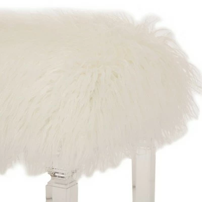 - Made of 100%polyester fabric construction with white fauxfur padding top, four clear acrylic legs, comfortable seating.