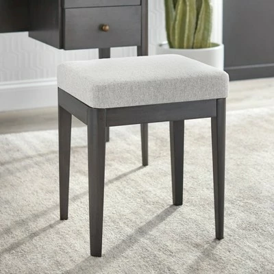 The Parc Vanity Stool from Lifestorey is a complement to any transitional or contemporary interior. Crafted of acacia wood, this stool features an attractive charcoal gray wood frame with tapered legs. Upholstered in a neutral Light Gray color linen-like fabric with simple clean lines. Incredibly versatile, use as a pair at the end of a bed, in a living room for added seating, entry hall or perfect as that needed vanity seat.