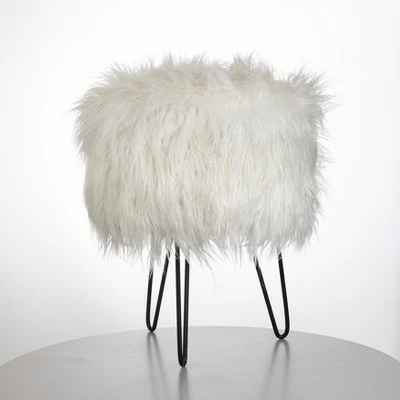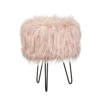 The Miranda Faux Fur Stool from Buylateral adds a splash of fun to any space. Kick up your sense of fashion by adding this round shaped faux fur stool accented with black metal hairpin legs to any room. Perfect extra seating in your living area, bedroom or even a dorm room. Available in furry black, white or blush pink, this accent piece will add a little eccentricity to your style.