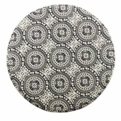 Medallion Pattern Fabric Upholstered Storage Ottoman with Wooden Bun Feet Cream/Black – Benzara