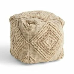 Brinket Large Contemporary Handcrafted Faux Yarn Square Pouf Ivory/Taupe – Christopher Knight Home