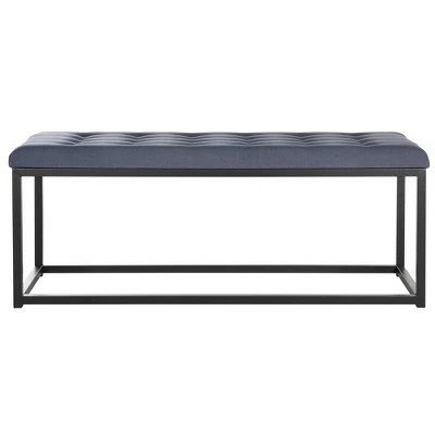 Graphic lines impart a designer look to the viewing bench, here with a button tufted upholstered seat and complimentary colored Parsons style legs. Universal in appeal, it adapts to industrial chic, contemporary or transitional spaces, from entry hall to bedroom. Crafted from Plywood and black iron legs, this bench is able to support up to five hundred and fifty pounds. The Reynolds bench is the perfect choice for additional style décor such as Rustic, Traditional or Transitional.