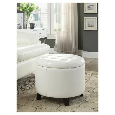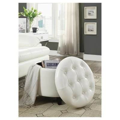 Make a bold statement with the Designs4Comfort Round Ottoman by Breighton Home. This transitional ottoman features a removable lid that provides easy access to concealed storage within the ottoman. A stylish tufted top makes a very comfortable conversation piece that can be used as additional seating or make a great place to rest your feet! Available in multiple finishes.