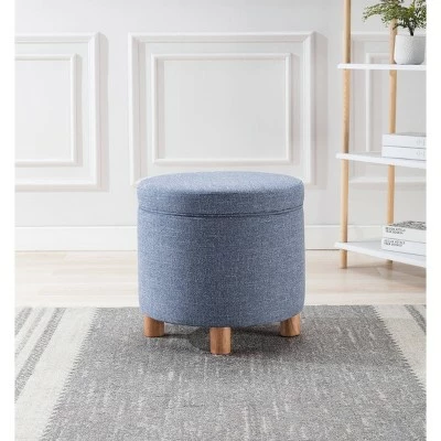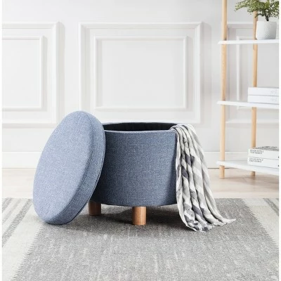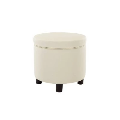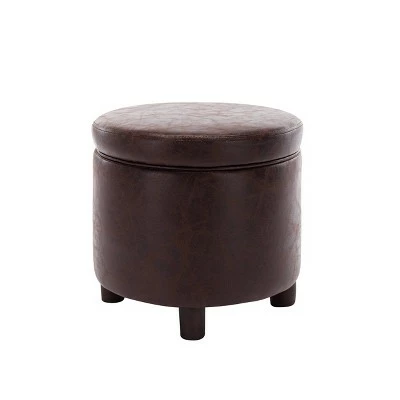 Round Storage Ottoman with Lift Off Lid – WOVENBYRD Dark Brown Faux Leather