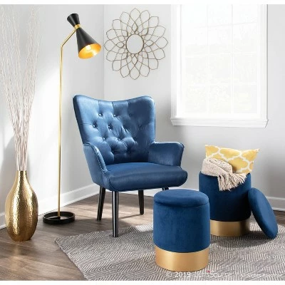 Bring a note of glamour to your home with the chic design of the Marla Nesting Ottoman by LumiSource. This set features a luxuriously soft cushioned velvet top and chic gold metal base. The smaller ottoman nests inside the larger ottoman for a space-saving design. Available in a variety of upholstery color options, choose the one that fits your space the best.