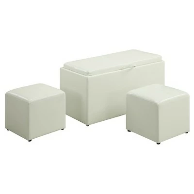 The Sheridan Storage Bench with 2 Side Ottomans from Breighton Home is the most multifunctional piece of furntiure that you didn’t know you needed. This sleek storage bench comes with 2 mini ottomans that fit perfectly inside the larger unit and make great additional seating when you need it.When those 2 side ottomans are out, you can use the bench to store your blankets, books and toys for when guests are over, out of sight and out of mind.