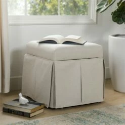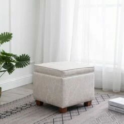 Square Storage Ottoman with Piping and Lift Off Lid Distressed Tan Faux Leather – WOVENBYRD