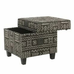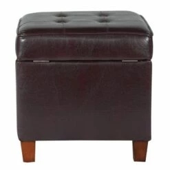 Square Storage Ottoman with Piping and Lift Off Lid – WOVENBYRD Dark Brown Faux Leather
