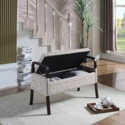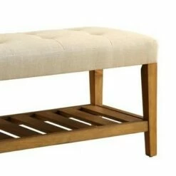 Wooden Storage Bench with Nail Head Trim – Benzara Beige/brown