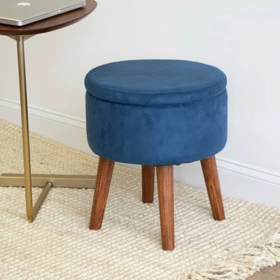 Perfect for small spaces, the Humble Crew Sloan 16″ Velour Round Storage Ottoman is a fun addition to any room in your home. Modern round footrest and stool with velour cushioned top and wooden legs creatively hides essentials out of sight and provides additional comfortable seating. Ideal size for entryways to remove shoes, bedrooms or bathrooms for hair and makeup sessions or the living room for small electronic storage. Product dims: 16.34″ x 16.34″ x 17.72″. Durable MDF structure supports up to 220lbs; foam padded cushion provides comfort and support when used for additional seating. Minor assembly required.