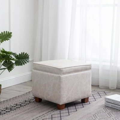 - Product Name: Square Storage Ottoman with Piping and Lift Off Lid – Distressed Tan Faux Leather – WOVENBYRD