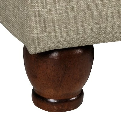 Offering solutions for seating, storage and serving, this cocktail storage ottoman features a lift-off lid with all over button tufting for classic style. Upholstered in a fashionable tan, this round ottoman will attract attention while hiding accessories, game controllers or magazines from view. Use it as a coffee table ottoman to serve beverages and snacks for guests or to provide extra seating. Featuring wood legs in a light cherry finish, this tufted ottoman with a lift-off lid is easy to assemble and maintain.