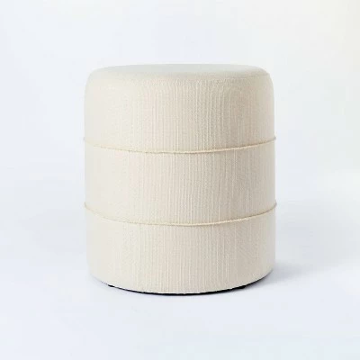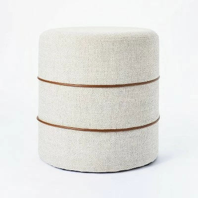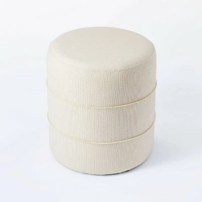 Round out your reading nook or any other area in elegant style with this Catalina Mud Cloth Round Ottoman from Threshold™ designed with Studio McGee. Set atop a wooden frame, this round ottoman is upholstered with a mud cloth-style fabric for dimensional appeal. In cream, this upholstered ottoman features textured seams to add a sophisticated look to your space.
