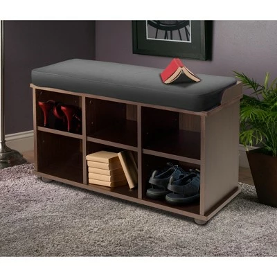 This Winsome Townsend Bench is perfect for your foyer, mudroom, or bedroom. This bench comes with a super comfy Cushion seat with Black cover. The Cushion size is 32.36″W x 11.81″D x 1.97″ thick. You can use the cushion to sit on ground or leave it on the bench. Under seating has six sections for storage with upper cubes size 10″W x 11.42″D x 6.69″H and three lower cubes size 10″W x 11.77″D x 7.24″H, perfect for shoes storage. Made from combination of solid and composite wood in Espresso Finish. Assembly Required.