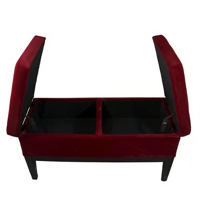Ore International’s Velvet Dual Lift Storage Bench has tailored style, spacious seating, and hidden storage which makes this your new favorite addition. Perfect in the living room or bedroom, this bench has style and smart features galore. Both ends of the cushioned top seat lift to reveal ample open storage inside. Features comfortable padding with plush upholstery over sturdy frame. This plush fabric bench adds modern flair to casual seating and tufted crystal-like button to add glam to your decor. Soft-touch upholstery creates a perfect spot for seating.