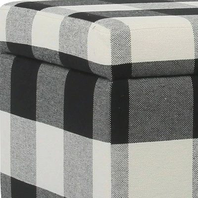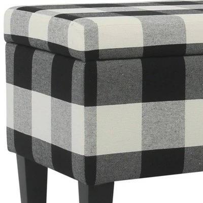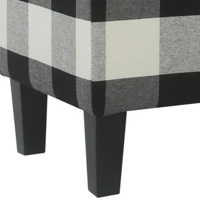 Designed with maximum style and function, this large-sized bench is ideal to hide shoes in your entryway, provide seating in your bedroom or living room when required. Sturdy wood and plywood constructed bench is upholstered in a black and white checkered pattern fabric; supported by black finished wooden tapered legs. This striking bench also includes reinforced hinged seat and deep storage capacity. A perfect furniture piece to use in any room for storage and seating together.