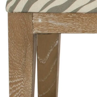 The Zambia Bench makes a bold statement without saying a word. A chic grey and beige zebra print in a beautiful linen cotton blend and geometric birch wood frame in a whitewashed finish make it ideal for both traditional and contemporary decor. Care Instructions: To prevent overall soiling, frequent vacuuming or light brushing is recommended. Cushions and pillows should be turned on a weekly basis. Down filled cushions should be brushed rather than vacuumed. Spot clean, using a mild water free solvent or dry cleaning product. Only a professional cleaner should undertake a complete overall cleaning. The use of steam or water based cleaners may cause excessive shrinking or staining.